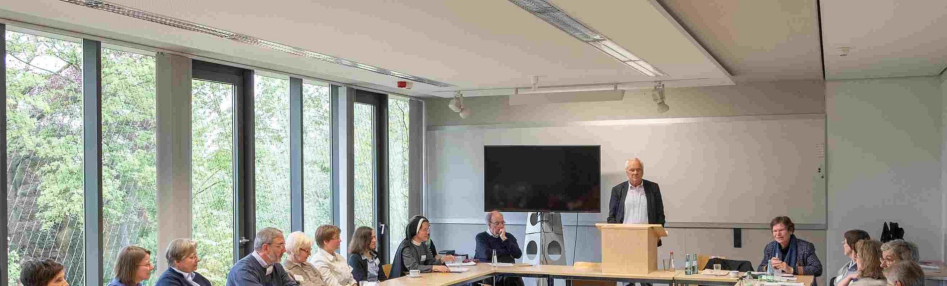 Rund dreißig Frauen und Männer aus den Ordensgemeinschaften unseres Bistums trafen sich am Samstag, 4. Mai, zu einem Studientag in der Hochschule St. Georgen in Frankfurt. Dass der auf den ersten Blick provokante Veranstaltungstitel "Sexualität und Ordensleben" keine unversöhnlichen Inhalte beschreibt, wurde den Teilnehmerinnen und Teilnehmern schnell deutlich. Der Theologe und Psychotherapeut Dr. Wunibald Müller beschrieb in seinem Referat Sexualität als Geschenk Gottes. Gerade weil sich Sexualität nicht auf Genitalität reduzieren lasse, sei sie auch für zölibatär Lebende ein bedeutsamer und damit unausweichlicher Teil unseres Menschseins. Eine in solcher Weite verstandene Sexualität lasse sie nicht mehr Gegenspielerin eines geistlichen Lebens sein, sondern vielmehr eine Quelle der Spiritualität. Sie dagegen als für das Ordensleben irrelevant zu ignorieren, führe zu einer unreifen Identität. Diese habe es schwer, die vielen Facetten von Intimität anzunehmen sowie mit Nähe und Distanz umzugehen.