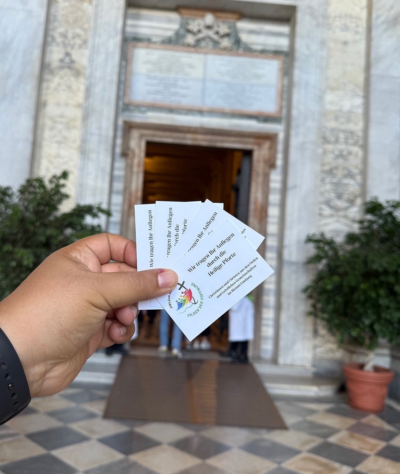 Diese Kärtchen begleiteten die Pilger:innen nach Rom – als sichtbarer Ausdruck der Verbundenheit mit den Menschen des Bistums.