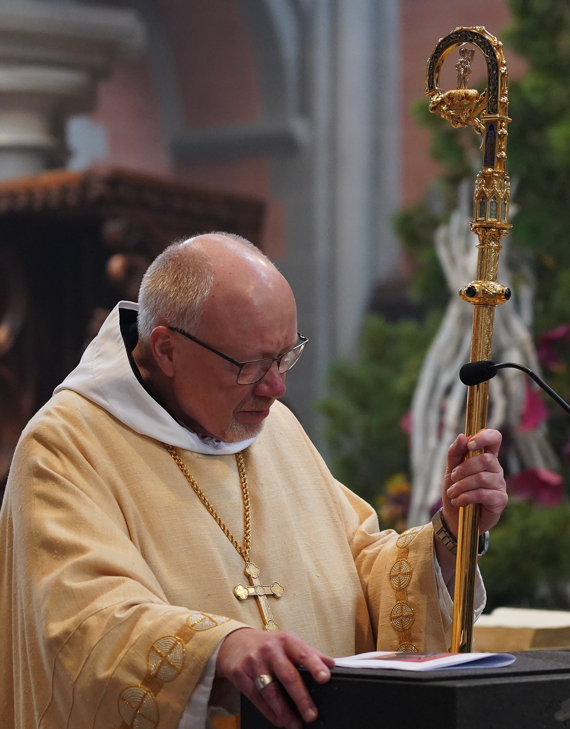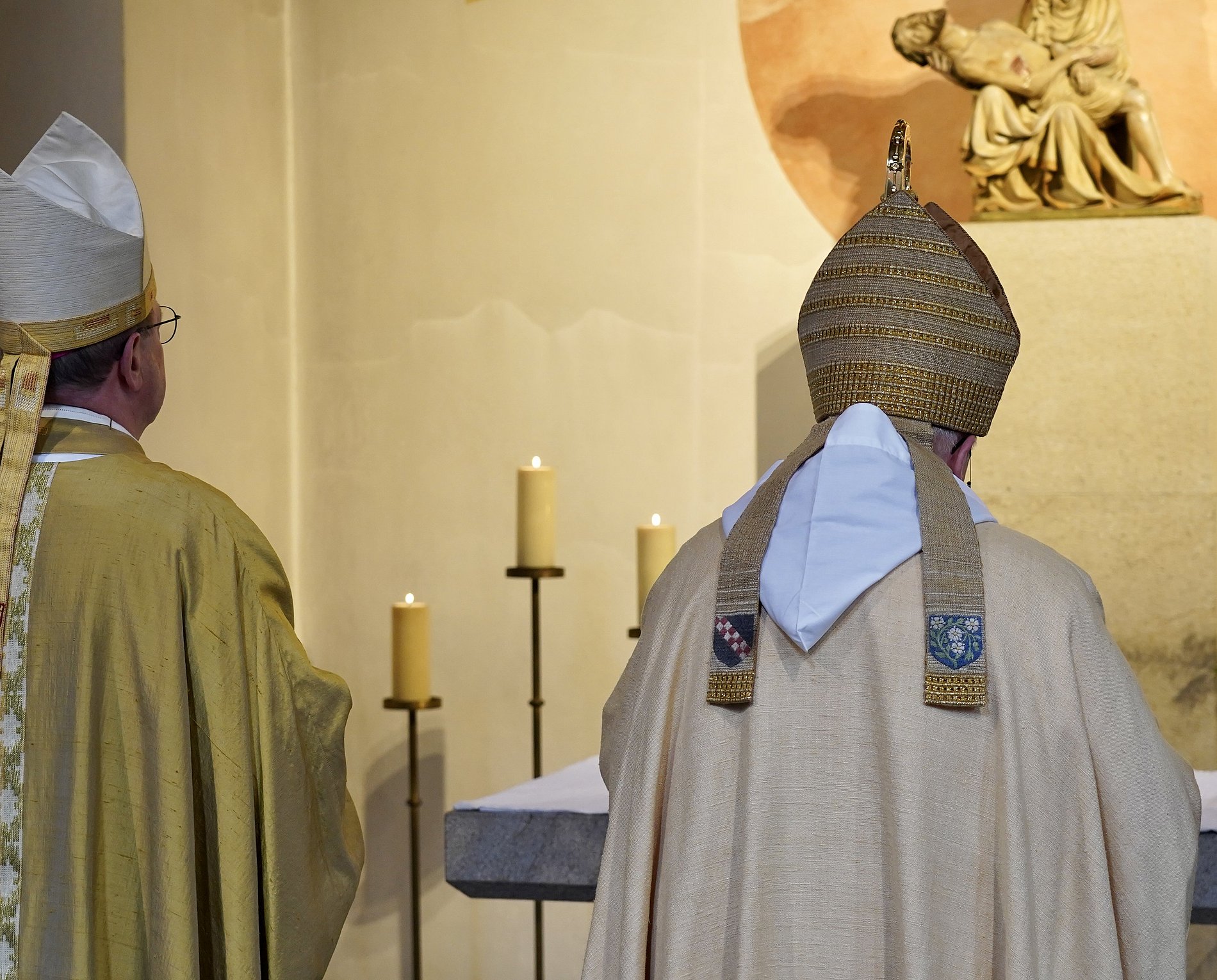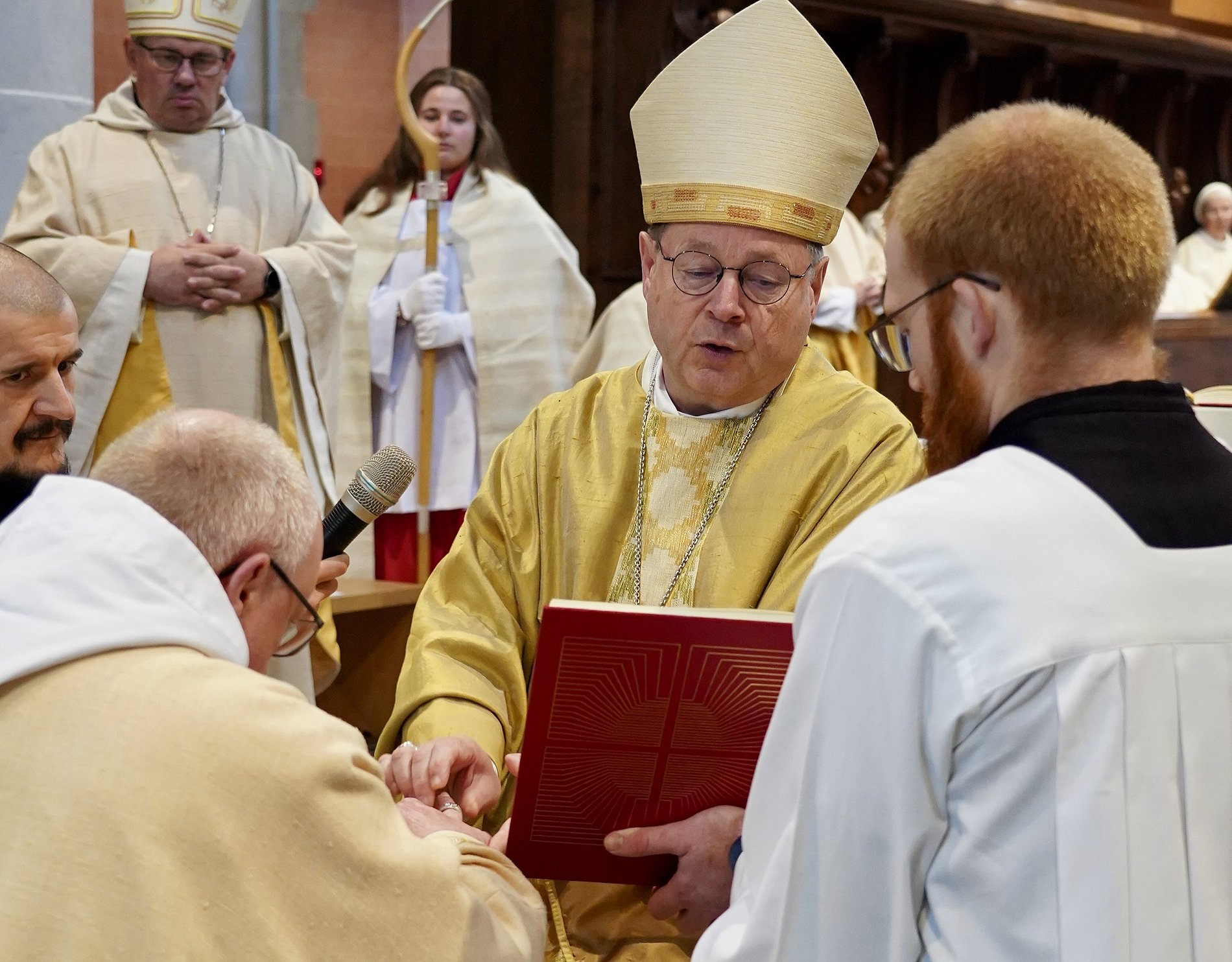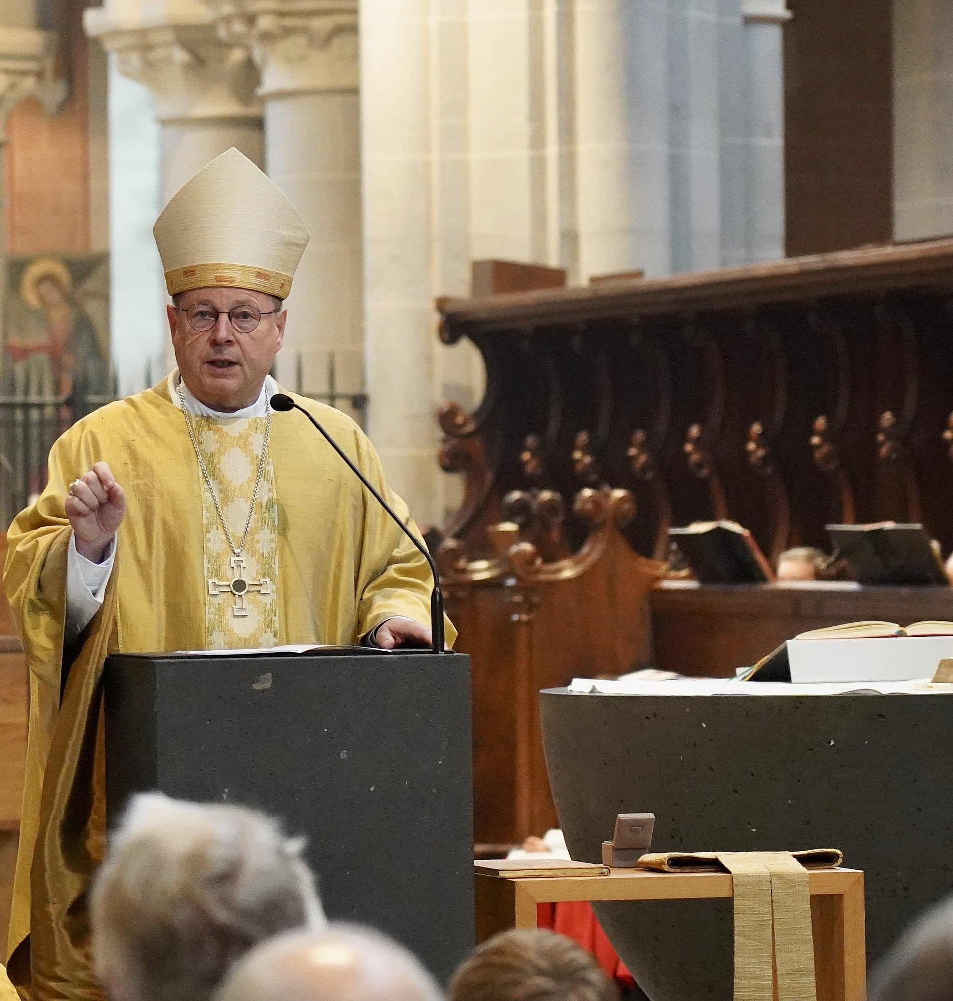 In seiner Predigt sprach Bischof Bätzing von der besonderen Verantwortung, die mit dem Amt eines Abtes verbunden ist. „Abt heißt Vater – das ist eine Mahnung und Erinnerung zugleich: Die anvertrauten Brüder zu Gott zu führen und die Sorge für ihr Heil als erste Pflicht anzusehen“, sagte der Bischof. Er erinnerte daran, dass Leitung in der Kirche immer Dienst sei. Der Maßstab, den das Evangelium hier gebe, sei mehr zu helfen als zu herrschen.