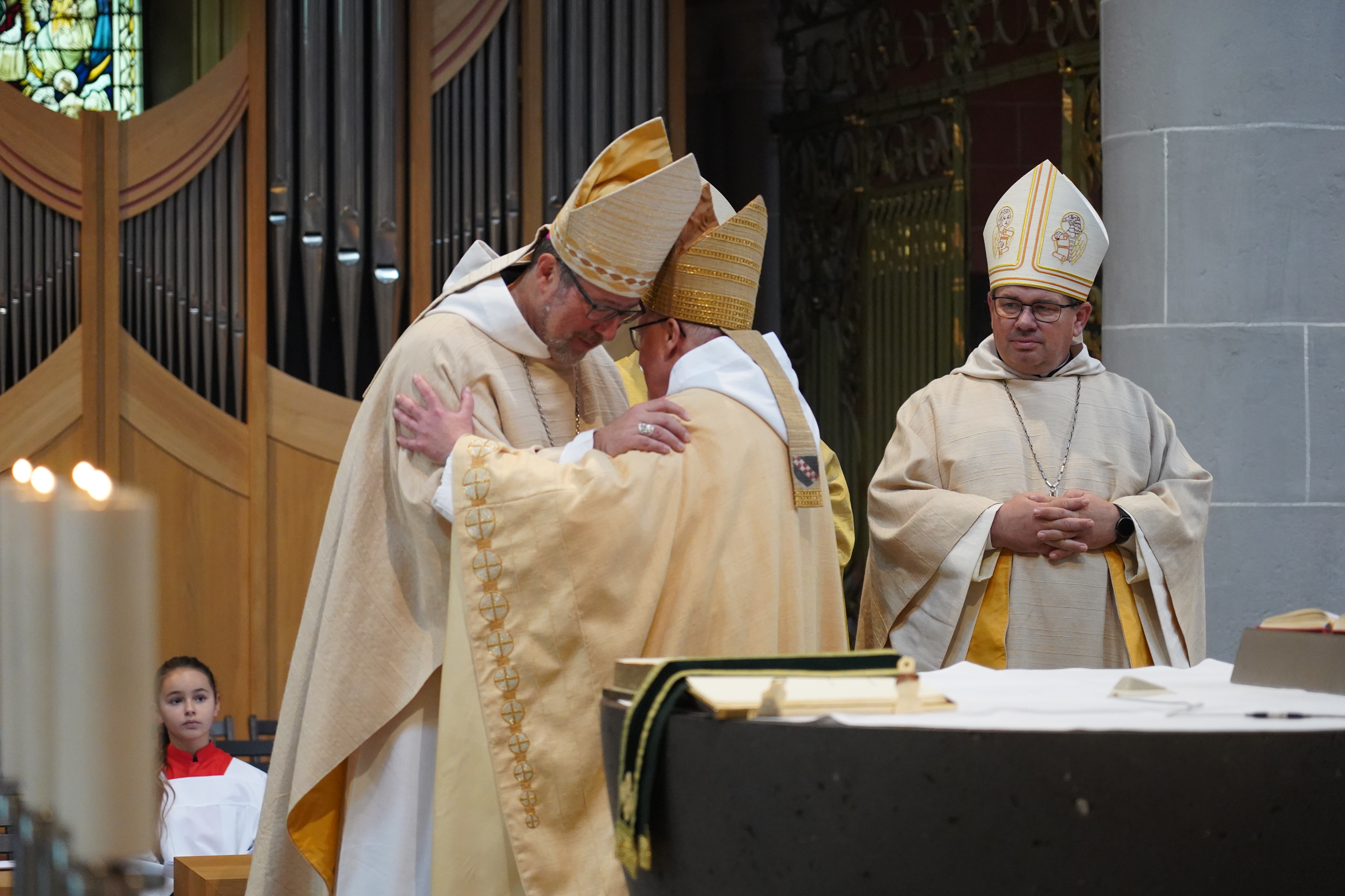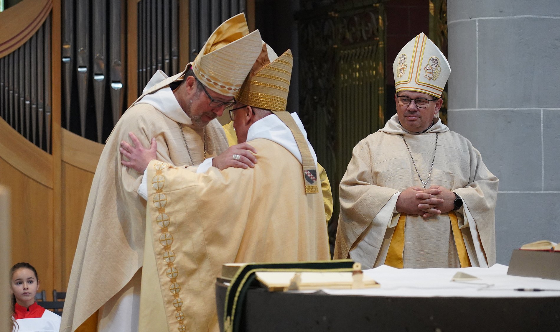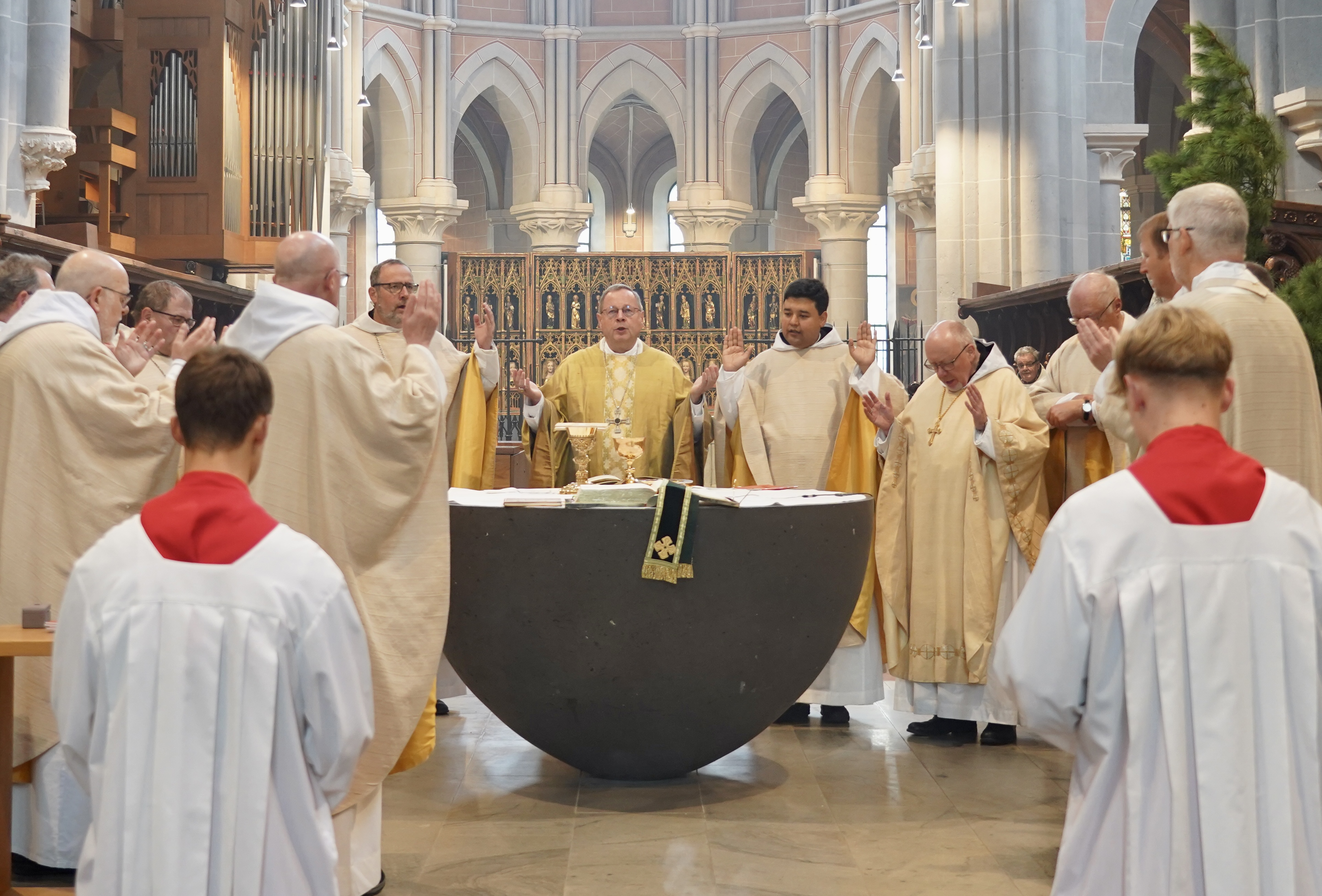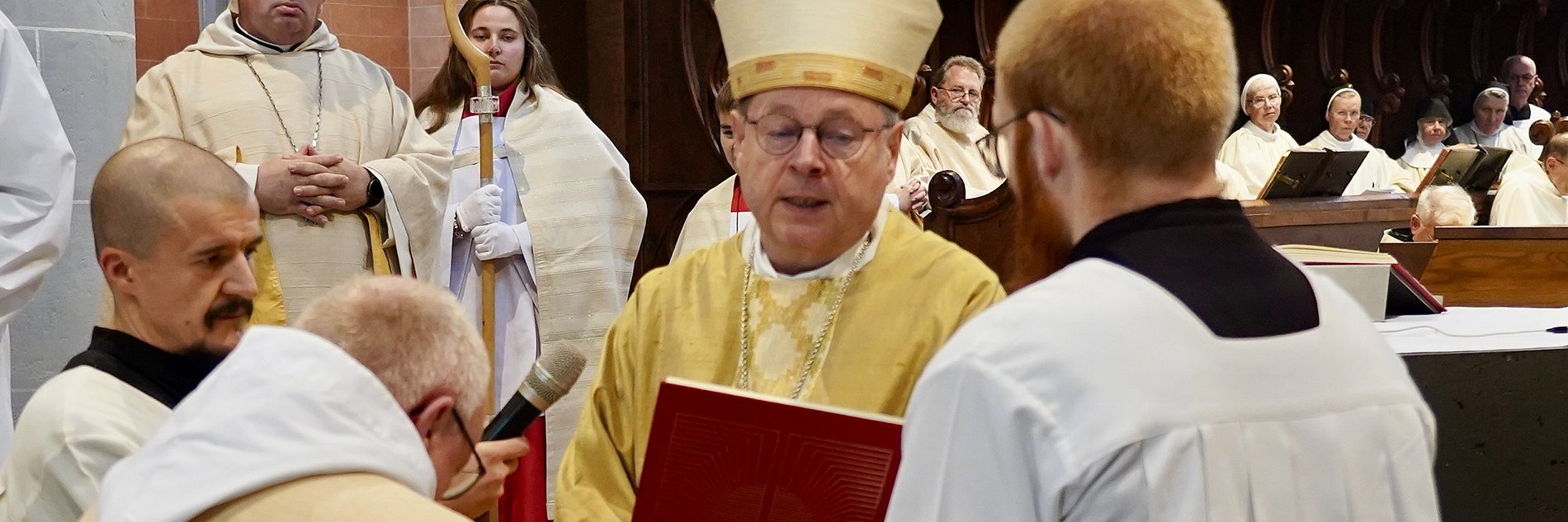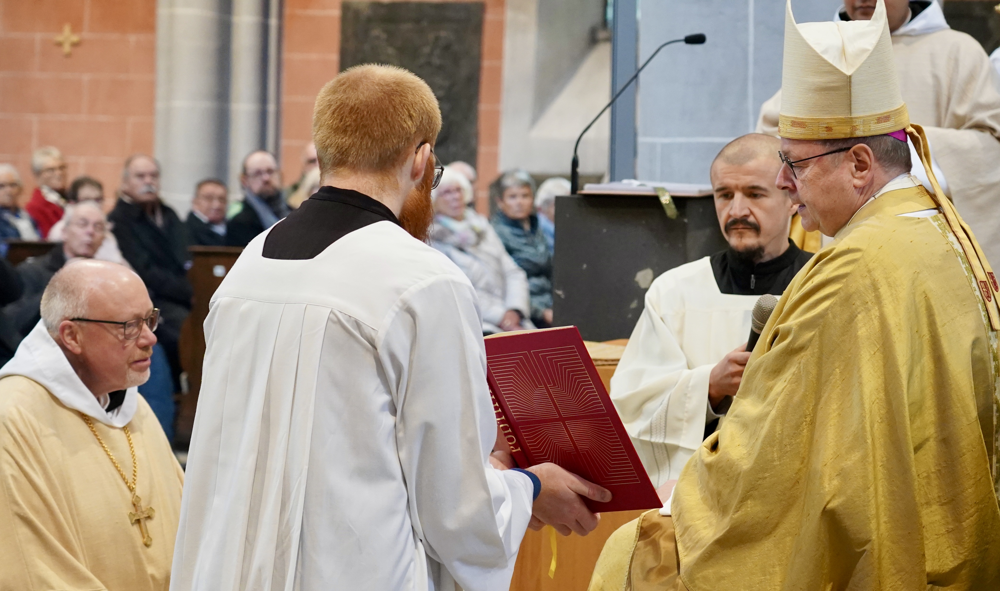 Der Bischof griff in seiner Predigt auch Worte von Papst Leo XIV. auf: „Wir leben in Zeiten, die schwer zu bewältigen sind und vor denen wir nicht davonlaufen dürfen. Sie verlangen von uns allen, niemals der Mittelmäßigkeit nachzugeben.“ Gott, so der Bischof, vertraue den Menschen und der Kirche. Bätzing ergänzte: „Gott vertraut Ihnen, lieber Abt Ignatius, und Ihrer Gemeinschaft. Er schenkt Vertrauen und ermutigt uns, auf dem Fels seiner Barmherzigkeit zu bauen. Da kann es nur gut werden.“